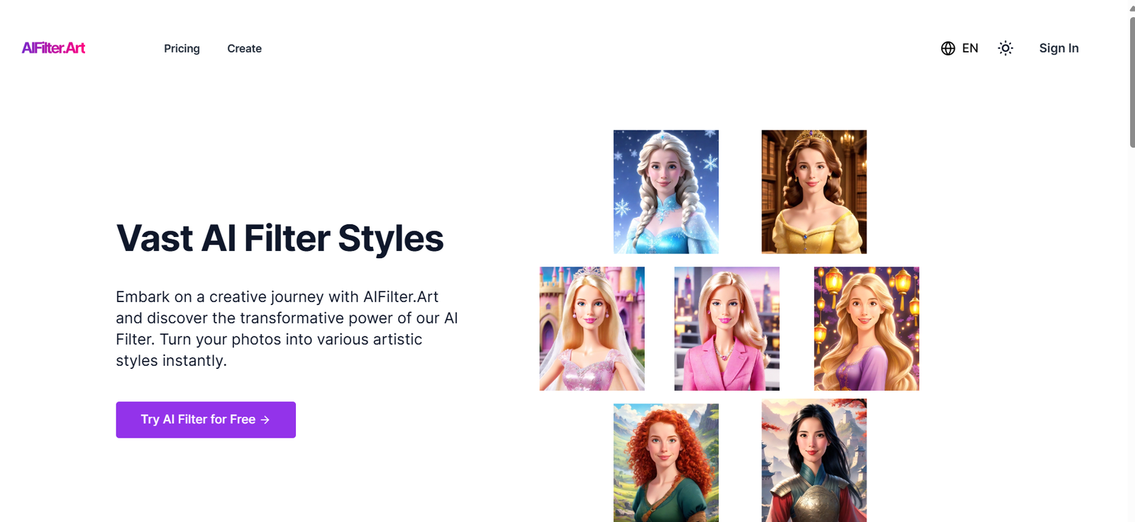 AIfilter is an innovative platform that allows users to create stunning AI-generated art with a variety of filters and effects. Perfect for artists, designers, and enthusiasts, AIfilter combines advanced AI technology with intuitive controls to make creating beautiful digital art accessible to everyone. Whether you're looking to enhance photos or create original artwork, AIfilter provides the tools and flexibility needed to bring your vision to life.