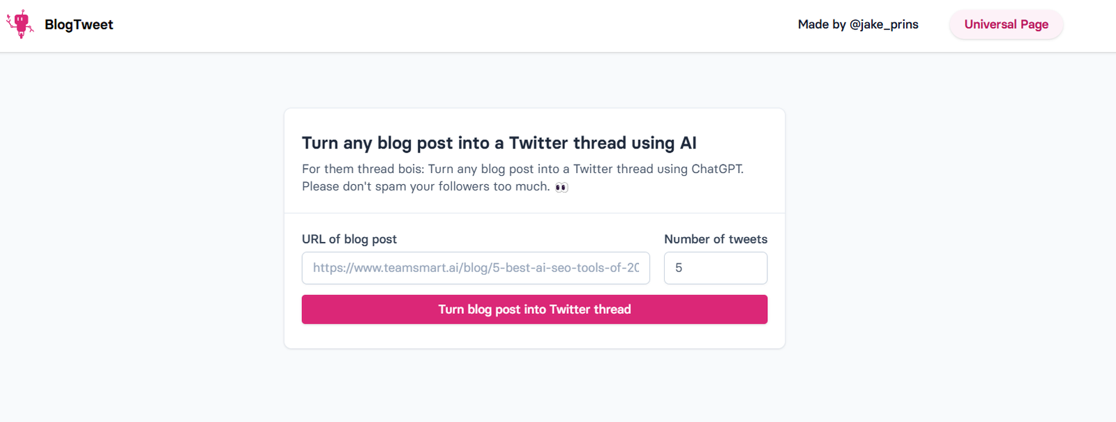 Transform your blog posts into engaging Twitter threads with ease. BlogTweet leverages ChatGPT to convert lengthy articles into concise, captivating threads, ideal for sharing insights on Twitter without overwhelming your followers.
