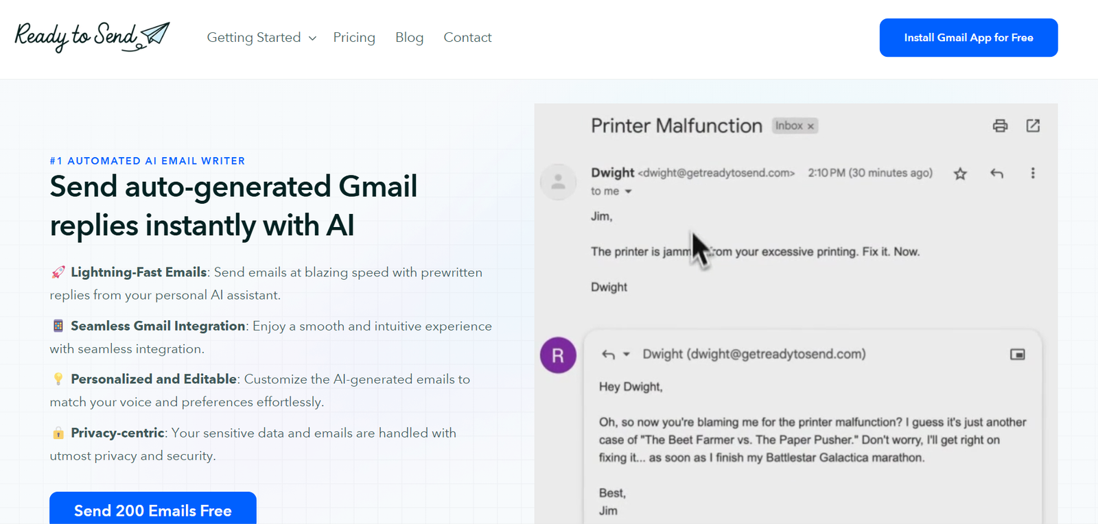GetReadyToSend offers an AI-powered tool for generating and sending Gmail replies instantly. It provides fast, personalized, and secure email responses with seamless integration.