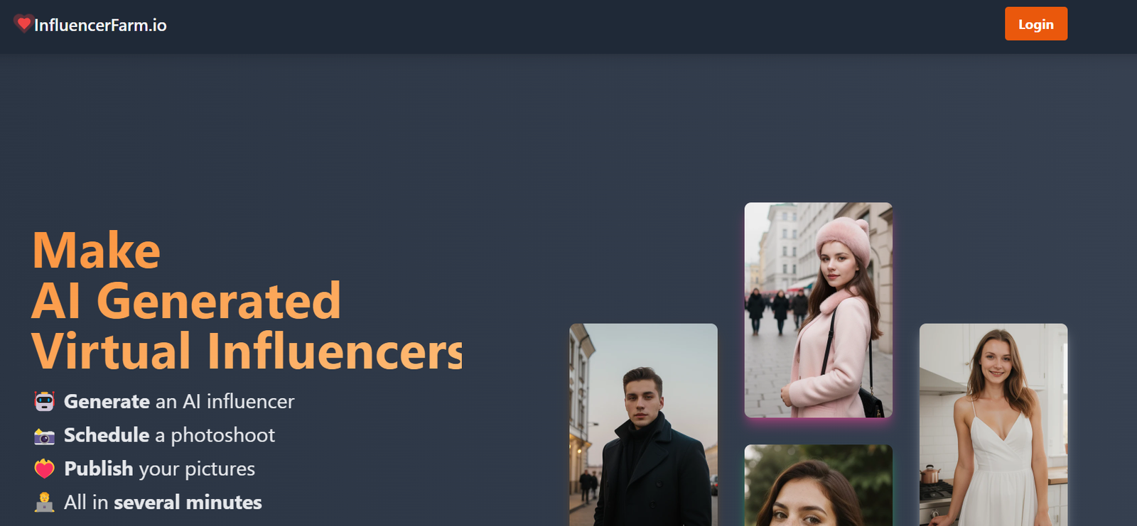 InfluencerFarm is a unique platform designed to create AI-generated virtual influencers for brands and individuals. This tool allows users to generate realistic AI influencers, schedule virtual photoshoots, and publish stunning pictures within minutes. Whether you’re a brand looking to enhance your marketing strategy or an individual wanting to create a unique digital persona, InfluencerFarm provides the tools you need to stand out.