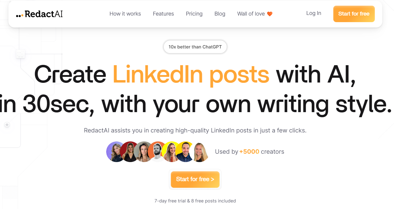 RedactAI assists you in creating high-quality LinkedIn posts in just 30 seconds, with your own writing style. This platform uses AI to help you craft LinkedIn posts that are engaging and tailored to your voice, saving you time and effort while ensuring your content stands out.
