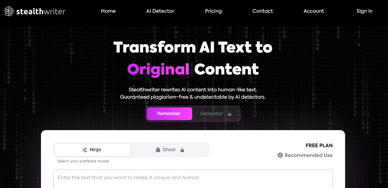 Stealthwriter transforms AI-generated text into human-like content, ensuring it is plagiarism-free and undetectable by AI detectors. This tool is perfect for anyone needing to rewrite AI content into more natural, human-readable text.
